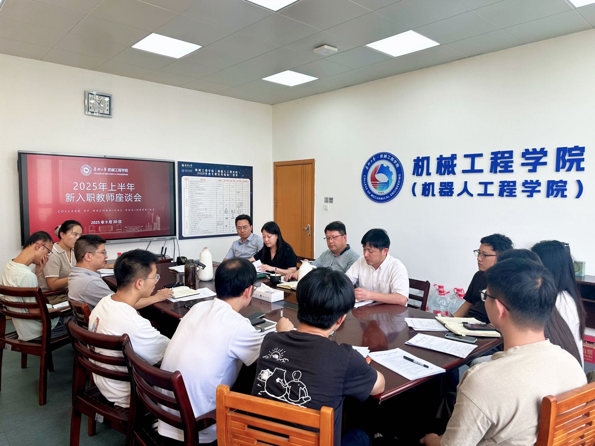 为帮助新入职教师尽快熟悉环境、融入团队、明确职责,2025年9月30日中午,嘉兴大学机械工程学院(机器人工程学院)于兴礼楼303会议室成功召开了2025年上半年新入职教师座谈会。学院领导班子全体成员与近期新入职的教师们齐聚一堂,进行了深入的交流与沟通。
