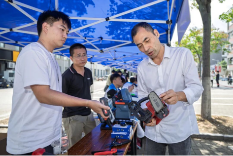 活动现场集中展示了学院实验室成果、“挑战杯”、大创赛项目的优秀作品以及“雷锋侠开源维修工坊”,面向全校师生提供线下免费维修服务。每个展位均配备两名专业讲解员,为同学们详细解说实验原理与应用场景,生动呈现机械学科的前沿动态。通过近距离观察实验设备与模型运作、亲手触摸科研成果,抽象的专业知识变得可感可知,极大激发了同学们对机械工程与机器人技术的兴趣。