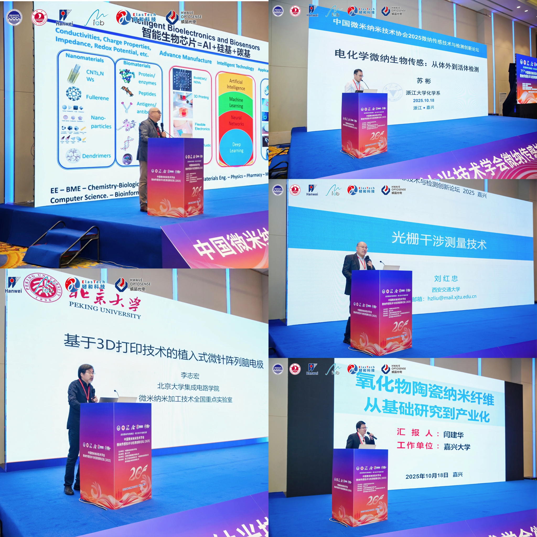 10月18日-19日,中国微米纳米技术学会微纳传感技术与检测创新论坛(2025)在嘉兴召开。本届论坛主题为“探索微纳传感新概念、助力技术升级新发展”,由中国微米纳米技术学会主办,我校承办,汉威科技集团股份有限公司协办,浙江芯动科技有限公司、宁波韧和科技有限公司、郑州威晶光电科技有限公司联合协办。中国微米纳米技术学会理事、北京大学教授李志宏,我校党委委员、副校长於建明,汉威科技集团股份有限公司董事长任红军出席开幕式并致辞。开幕式由机械工程学院(机器人工程学院)副院长鹿业波教授主持。