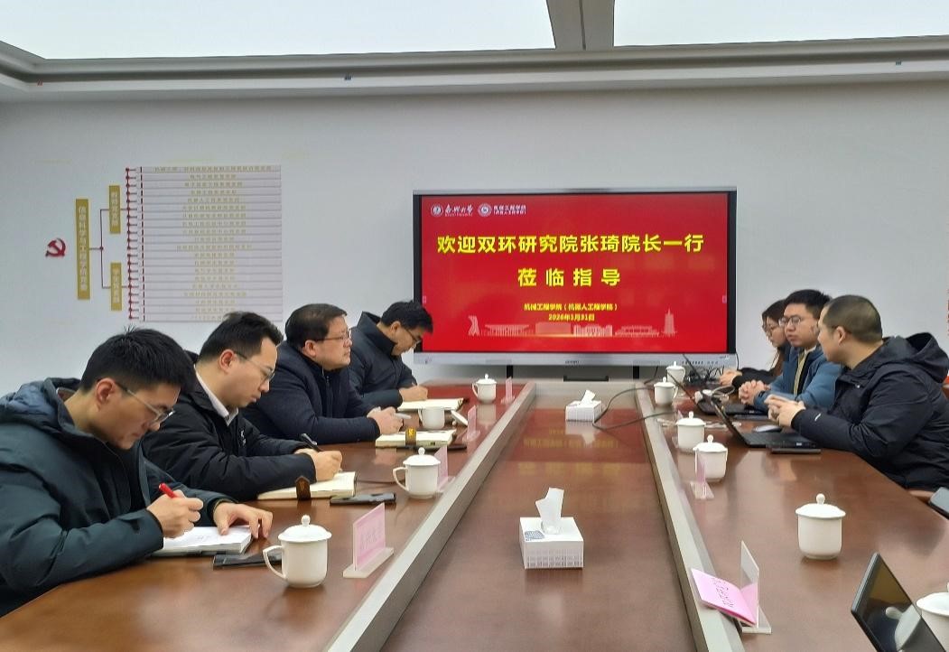 1月31日,双环研究院来我院进行交流。学院院长朱耀东、副院长鹿业波、机器人与智能装备研究所所长陈刚、机电工程实验中心副主任杨超参加座谈会。