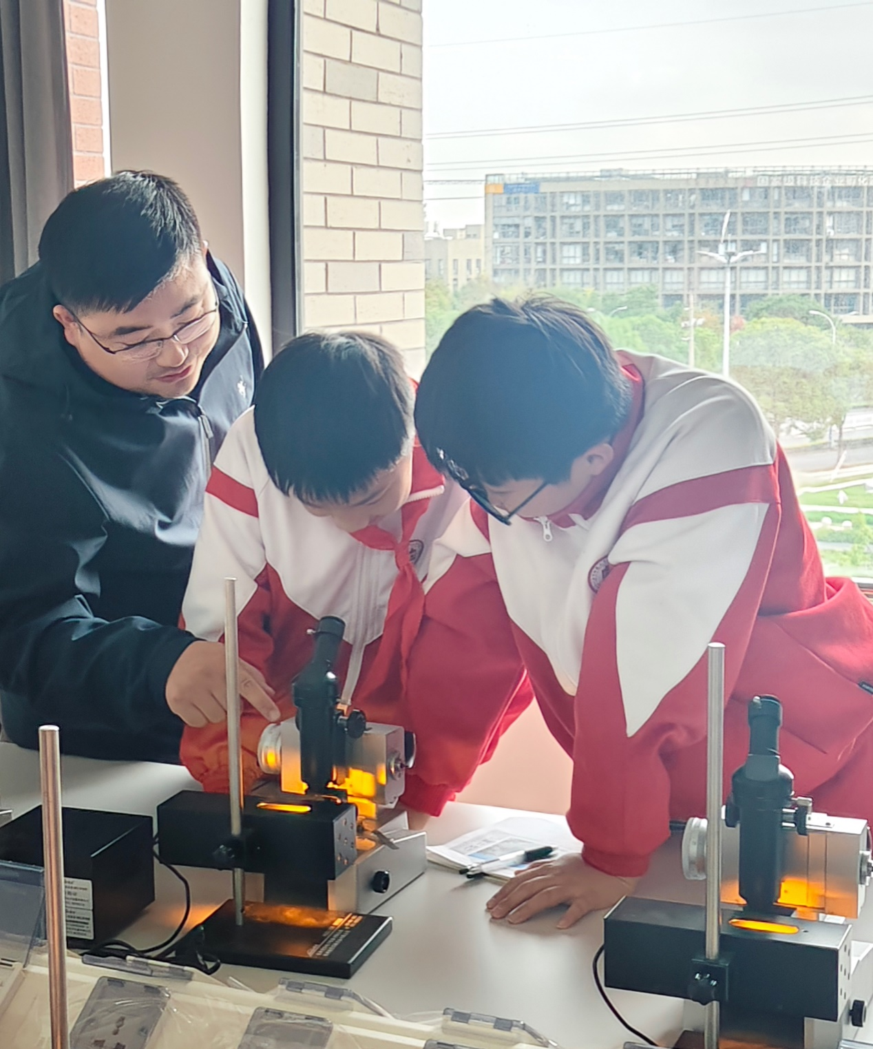 物理教研部的老师们还分组给同学们介绍和演示了拉伸法测弹性模量、气体比热容比的测量、霍尔效应等实验的原理和操作流程,并解答学生提出的诸多物理问题。活动受到师生的一致好评。