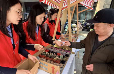 活动现场暖意融融、氛围浓厚。志愿者们与社区工作人员密切配合,“旧书、旧电池换绿植”专区成为人气最旺的“绿色驿站”。居民们纷纷携带家中闲置旧物前来兑换,志愿者热情引导、细致登记,将一份份环保行动化作盎然绿意,在传递春日生机的同时,也让绿色低碳理念深入人心。