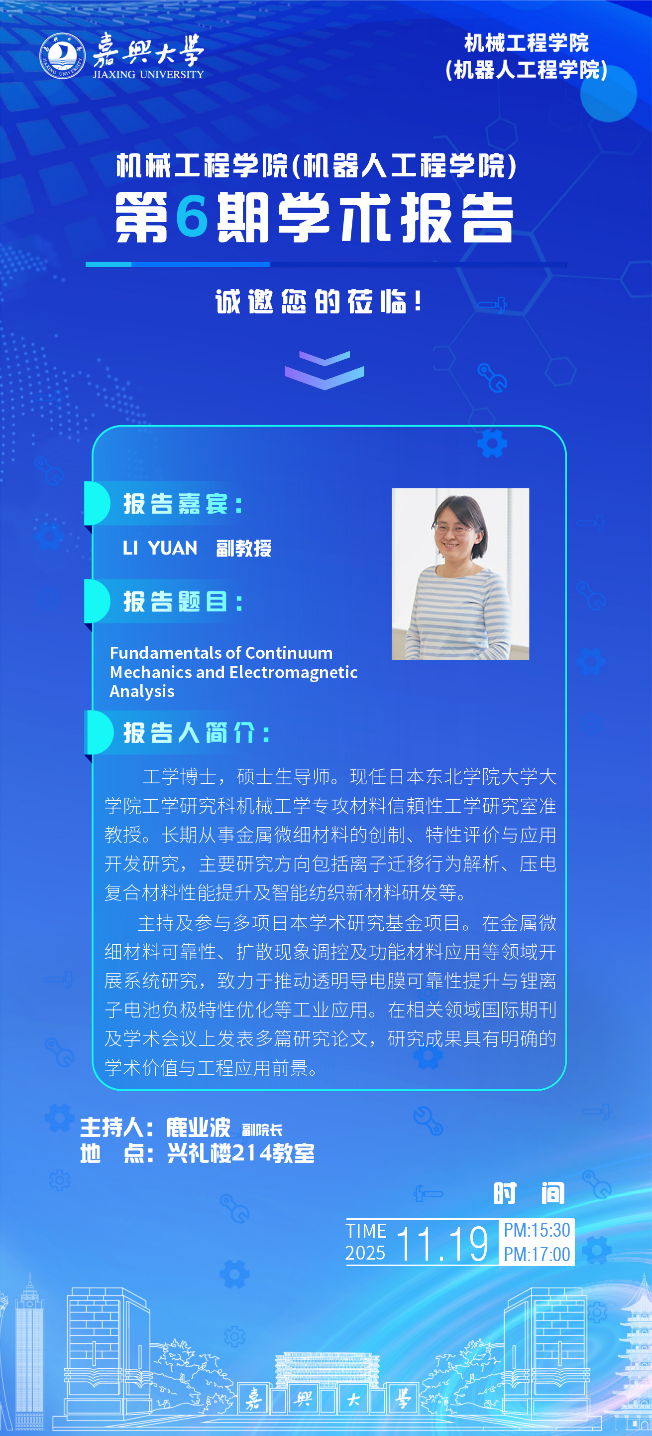 2025年嘉兴大学机械工程学院(机器人工程学院)第6期学术报告暨机械专业硕士研究生“启新·智汇前沿”学术研讨会