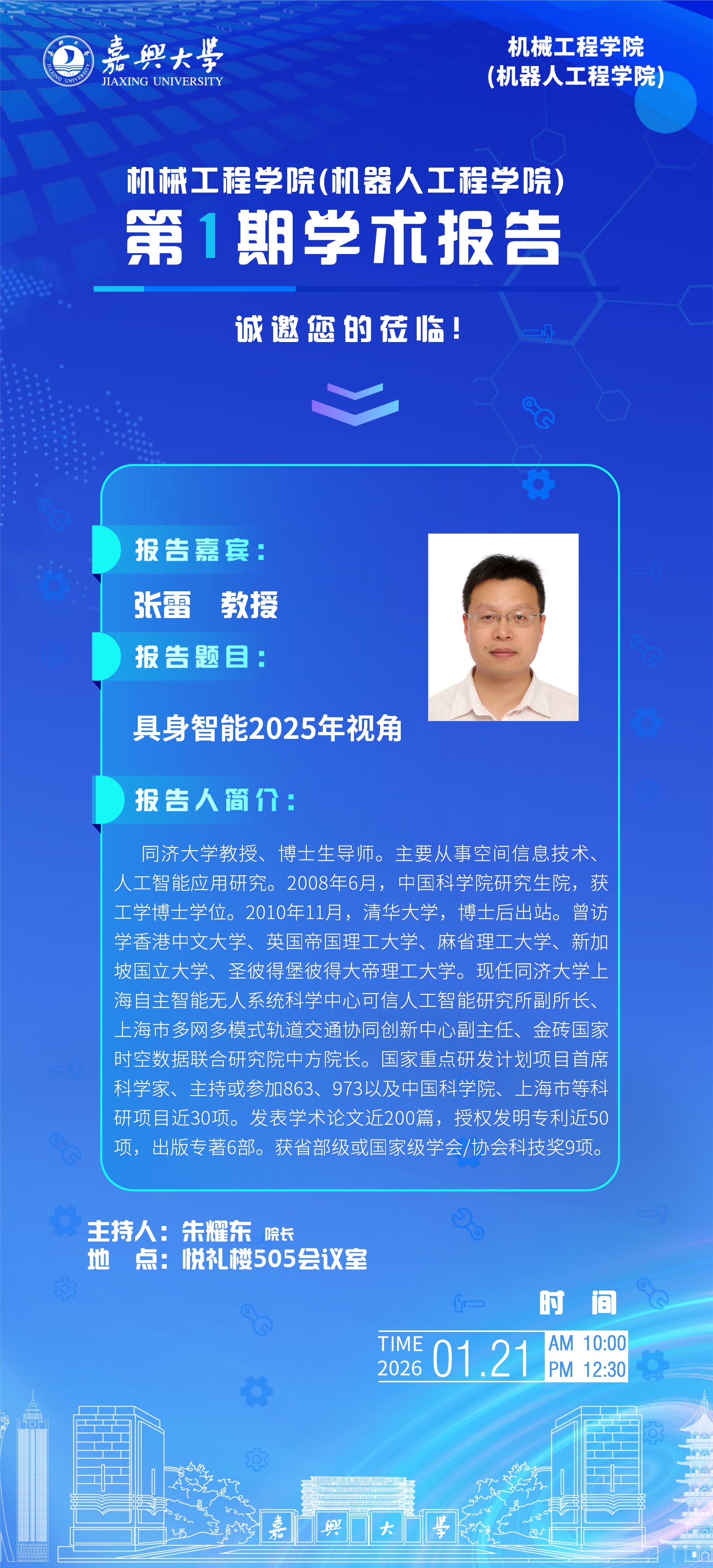2026年嘉兴大学机械工程学院(机器人工程学院)第1期学术报告