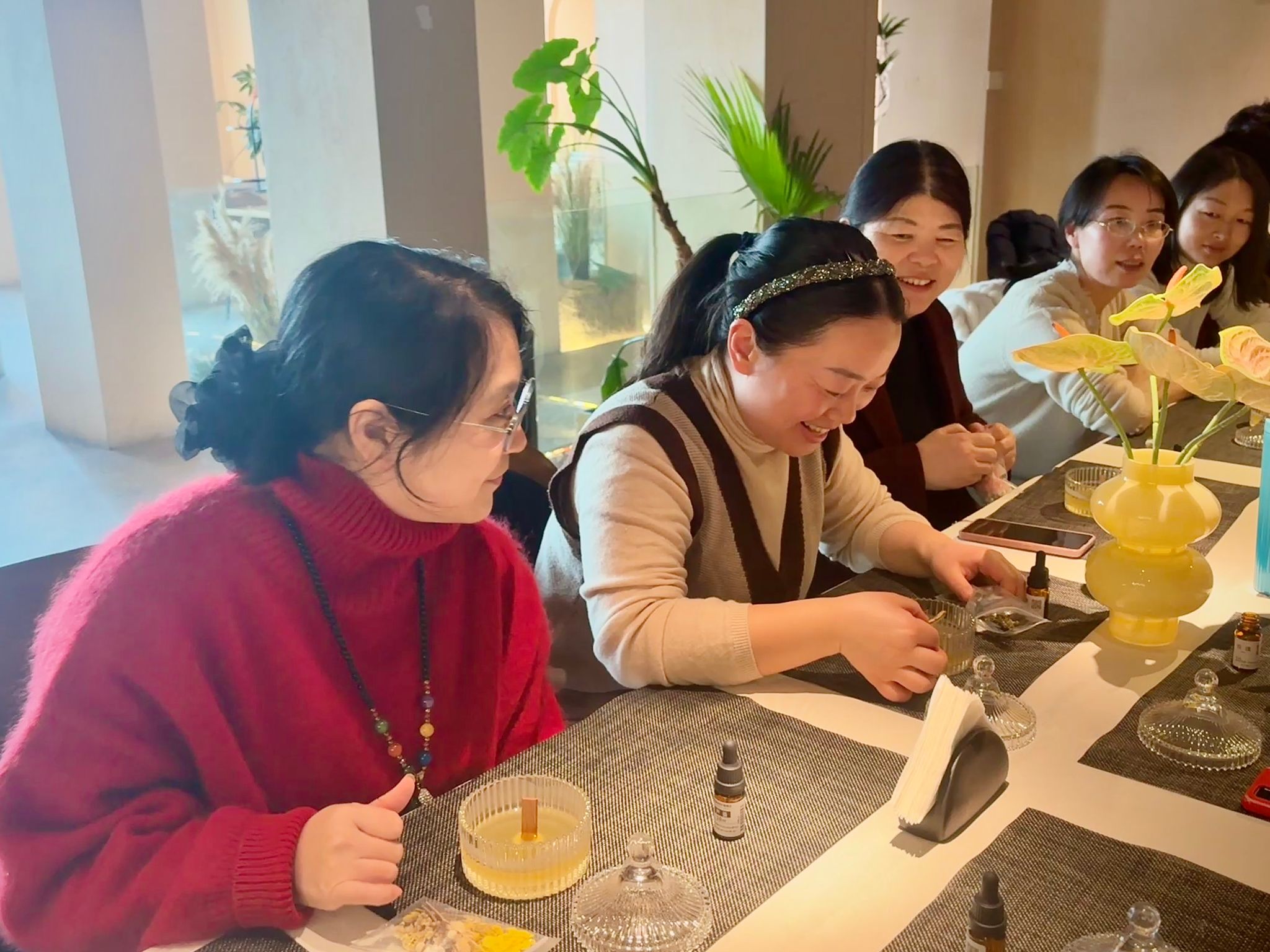 学院女教职工们前往嘉兴市文化艺术中心开启香薰DIY体验环节。活动现场温馨雅致,工作人员提前备好香薰蜡油、精油、干花、模具等各类手工材料,大家在专业指导下沉浸式体验手工创作的乐趣。在随后的茶话会上,大家围坐畅谈,交流工作心得、分享育人感悟。大家在轻松愉悦的交流中拉近了彼此距离,既舒缓了身心压力,也增进了同事情谊。最后,大家漫步秀湖之畔,先后参观了秀洲非遗馆、美术馆等特色场馆,近距离感受嘉兴本土非遗文化与艺术魅力。