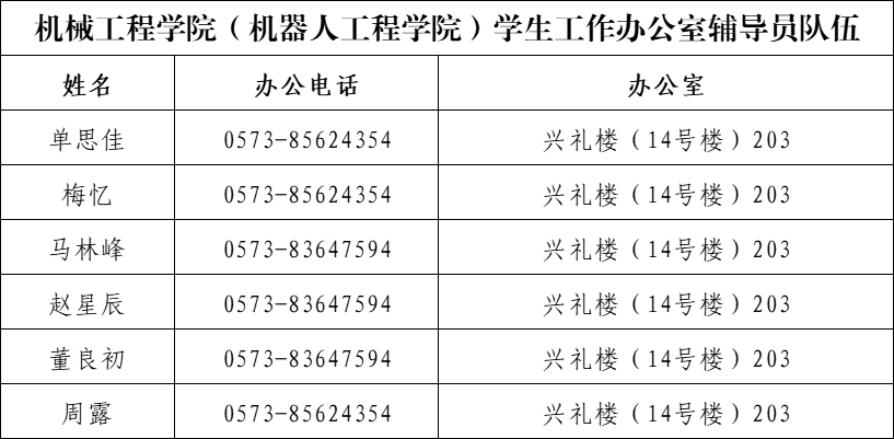 机械工程学院(机器人工程学院)学生工作办公室辅导员队伍